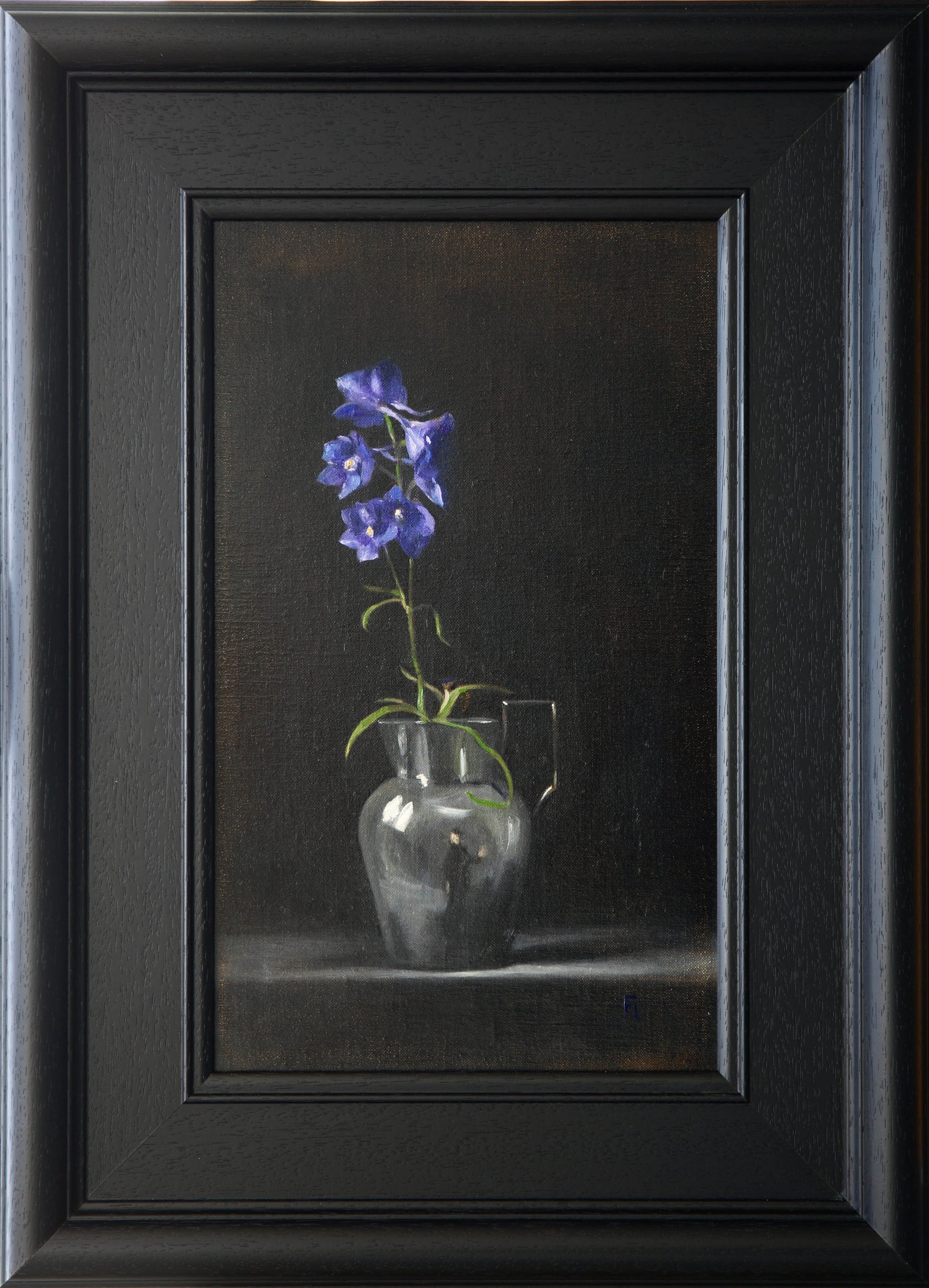 'Delphiniums in Vase with Artist Reflection' - Available Exclusively at Fotheringham Gallery